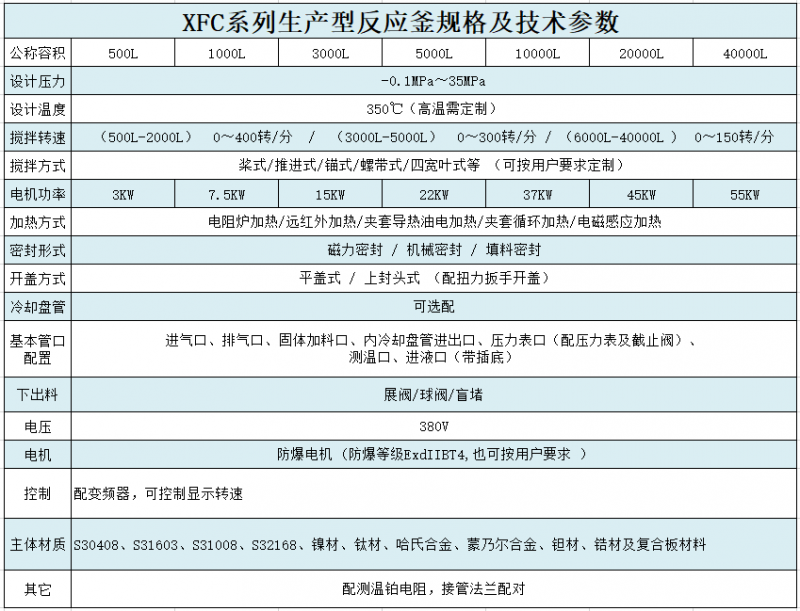 2、夾套按工藝需要采用不銹鋼(SUS304)或碳鋼(Q235-B)等。